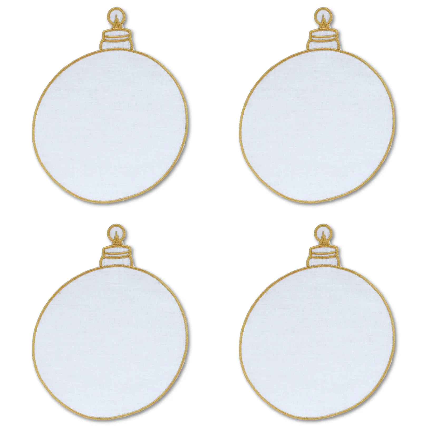 Whimsical cocktail napkins in the shape of your Christmas ornaments with a festive gold trim.