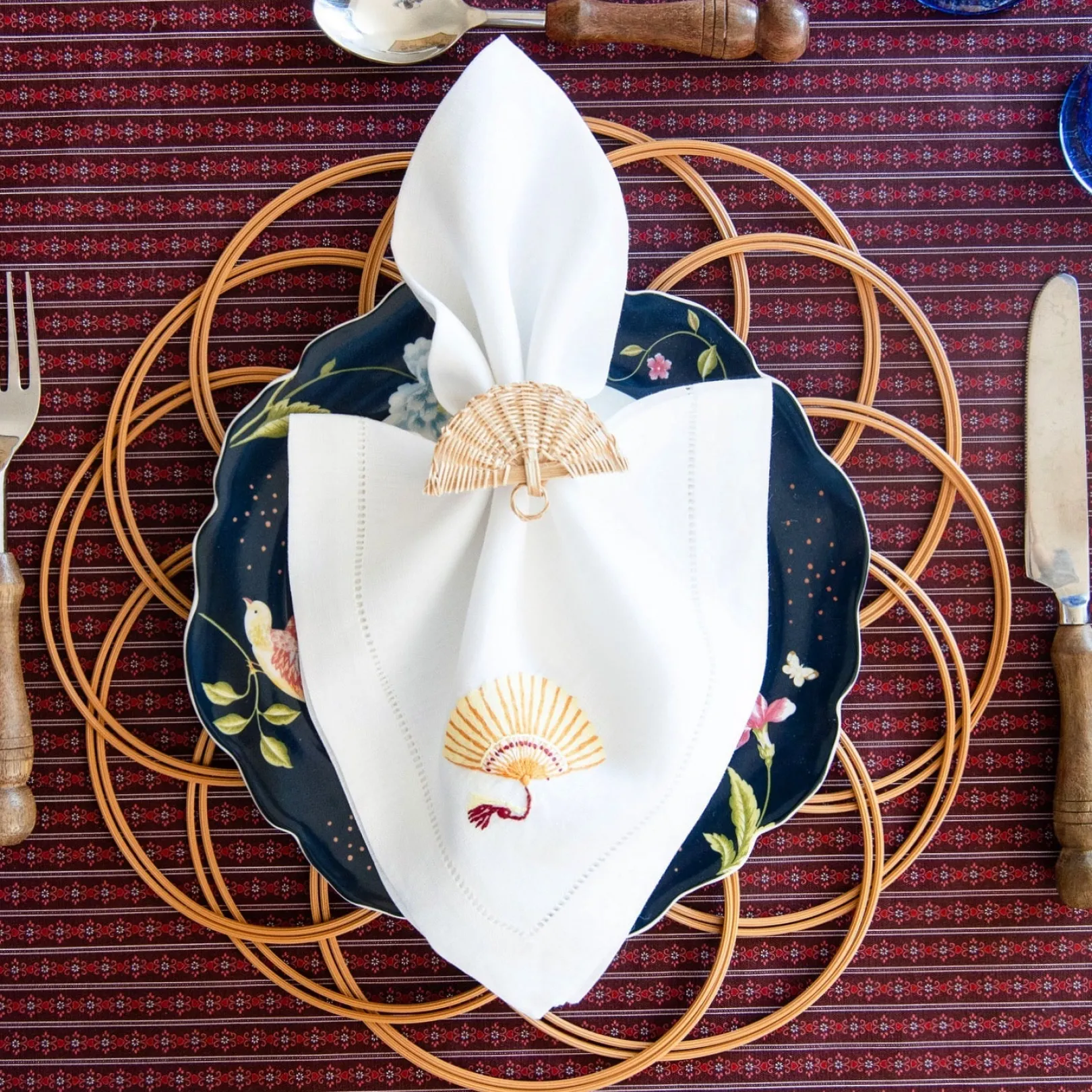 These fan-shaped rattan napkin rings are perfect for festive meals.