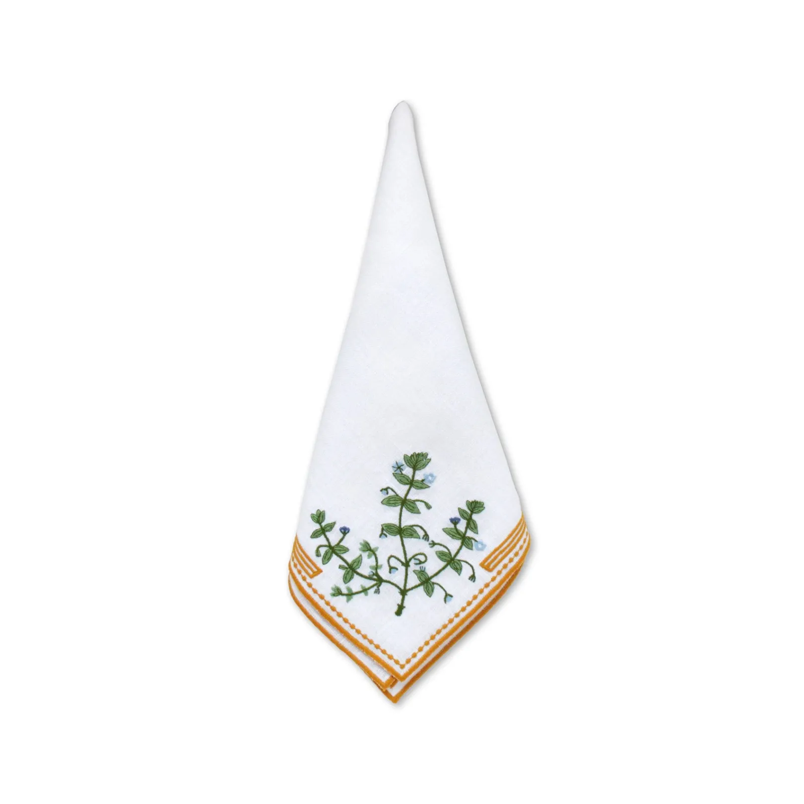 — 100% white linen fabric with gold and colored thread