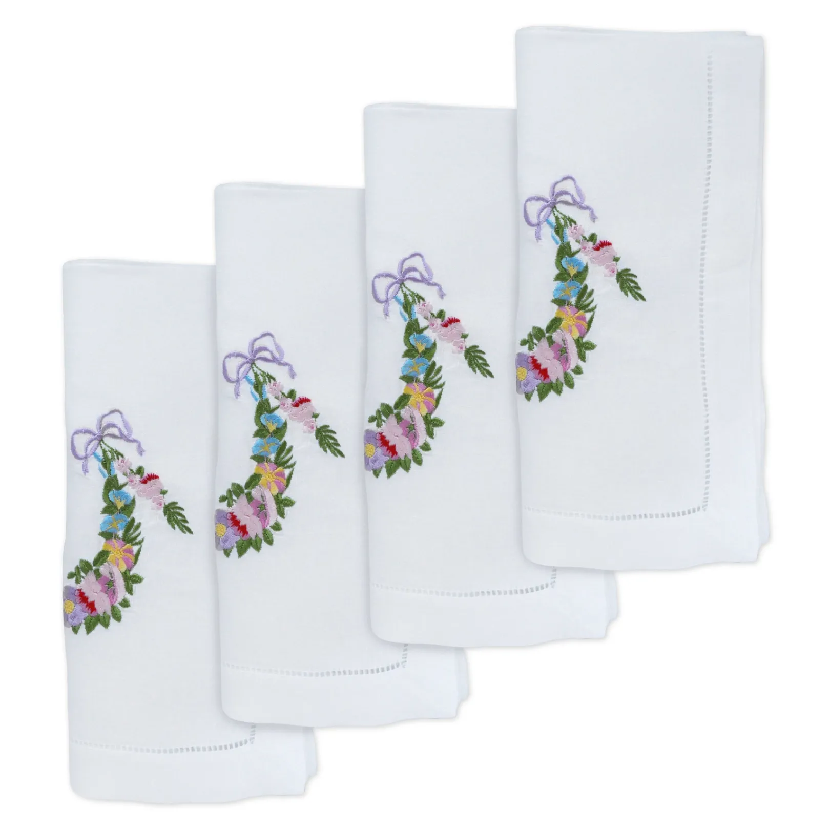 These napkins show a mixed flower garland – perfect for spring holidays, like Easter, Passover, or Mother’s Day