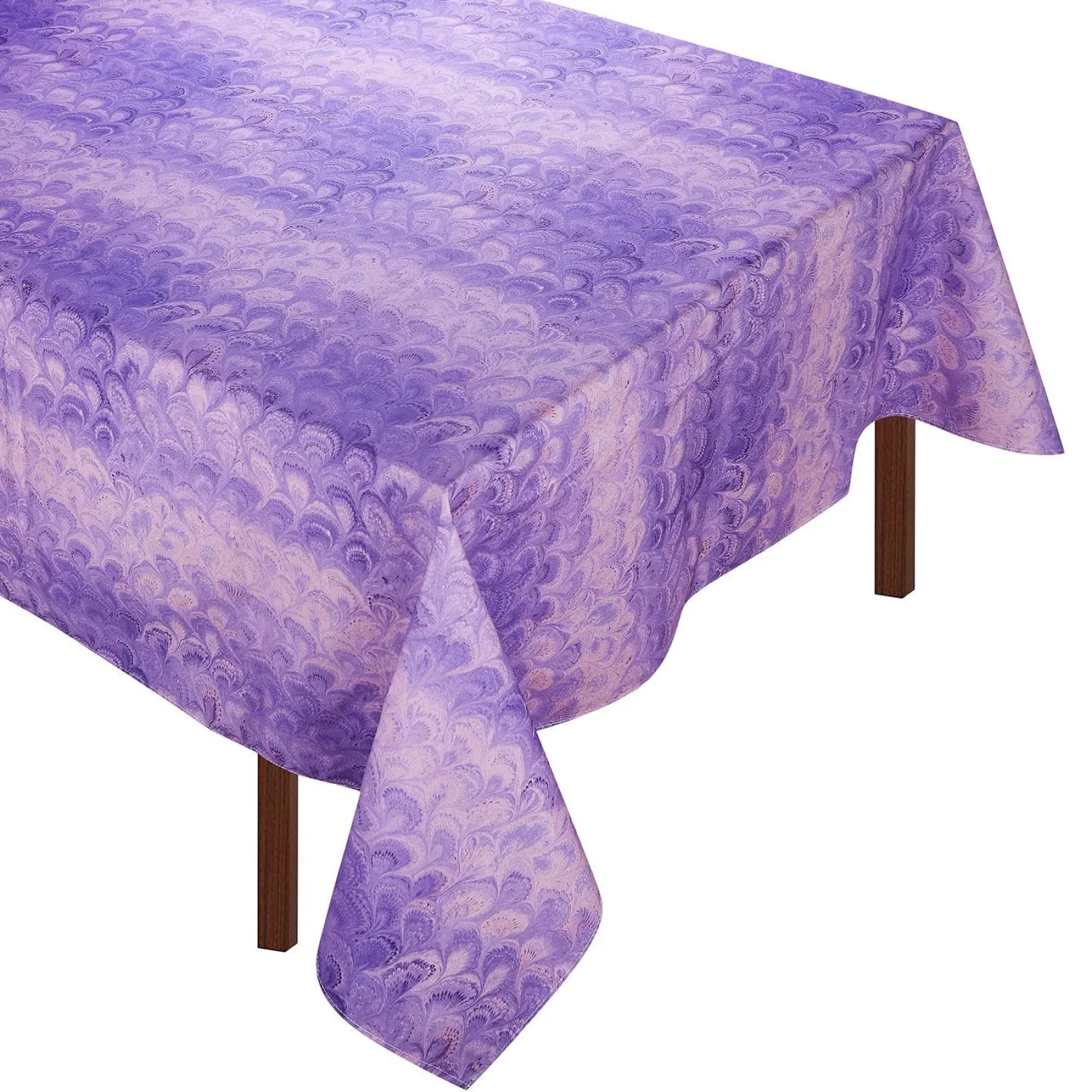 This lilac marble-patterned, rectangular tablecloth is available in 2 sizes.
