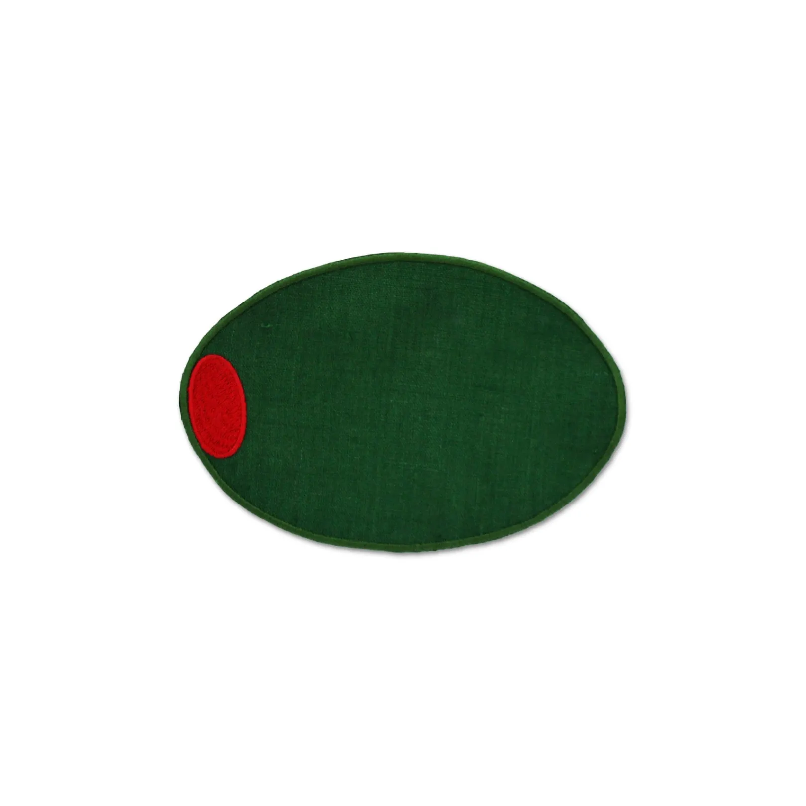 Cocktail napkins for martini lovers in the shape of a green martini olive.