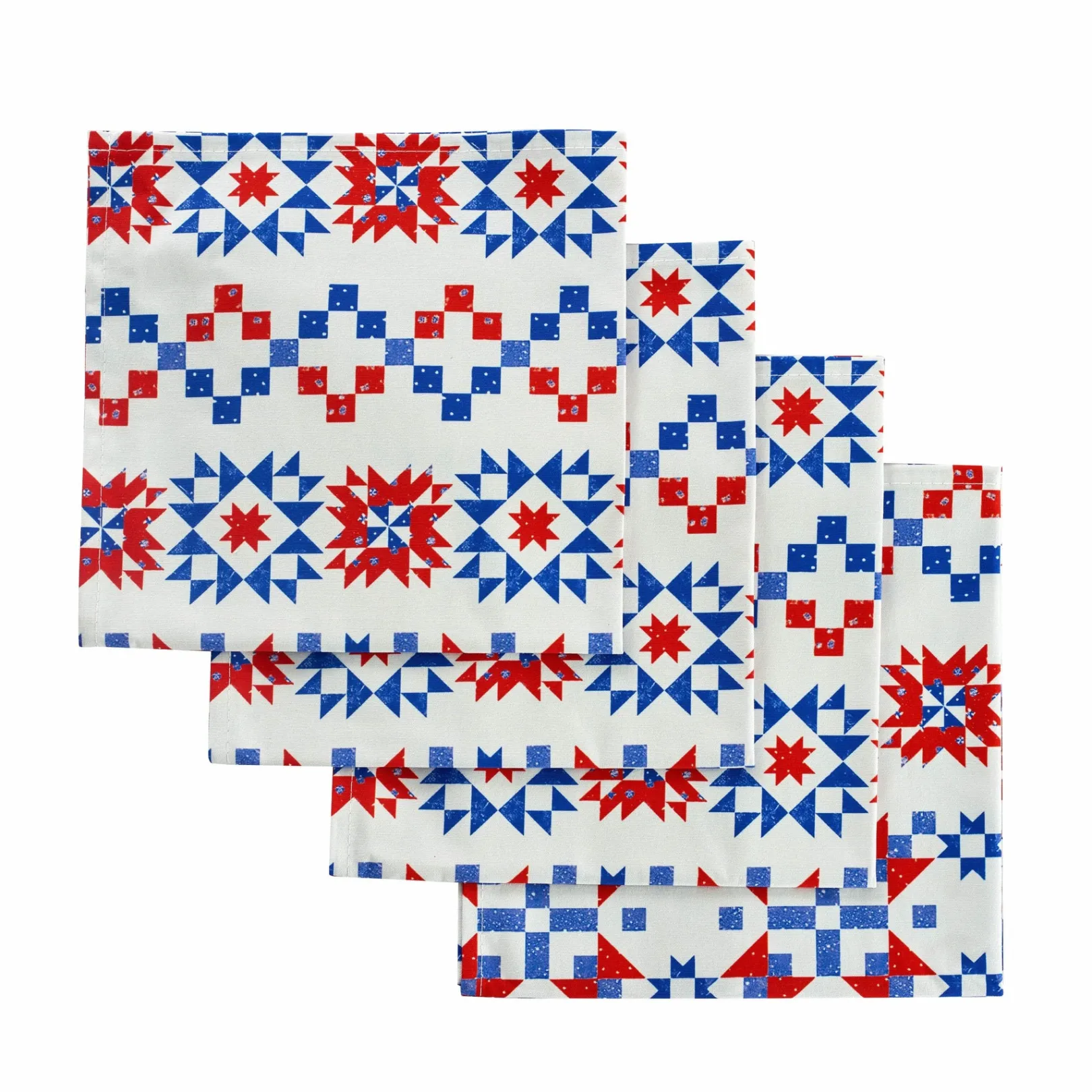 A dramatic printed cotton napkin set with red coral patterned throughout.