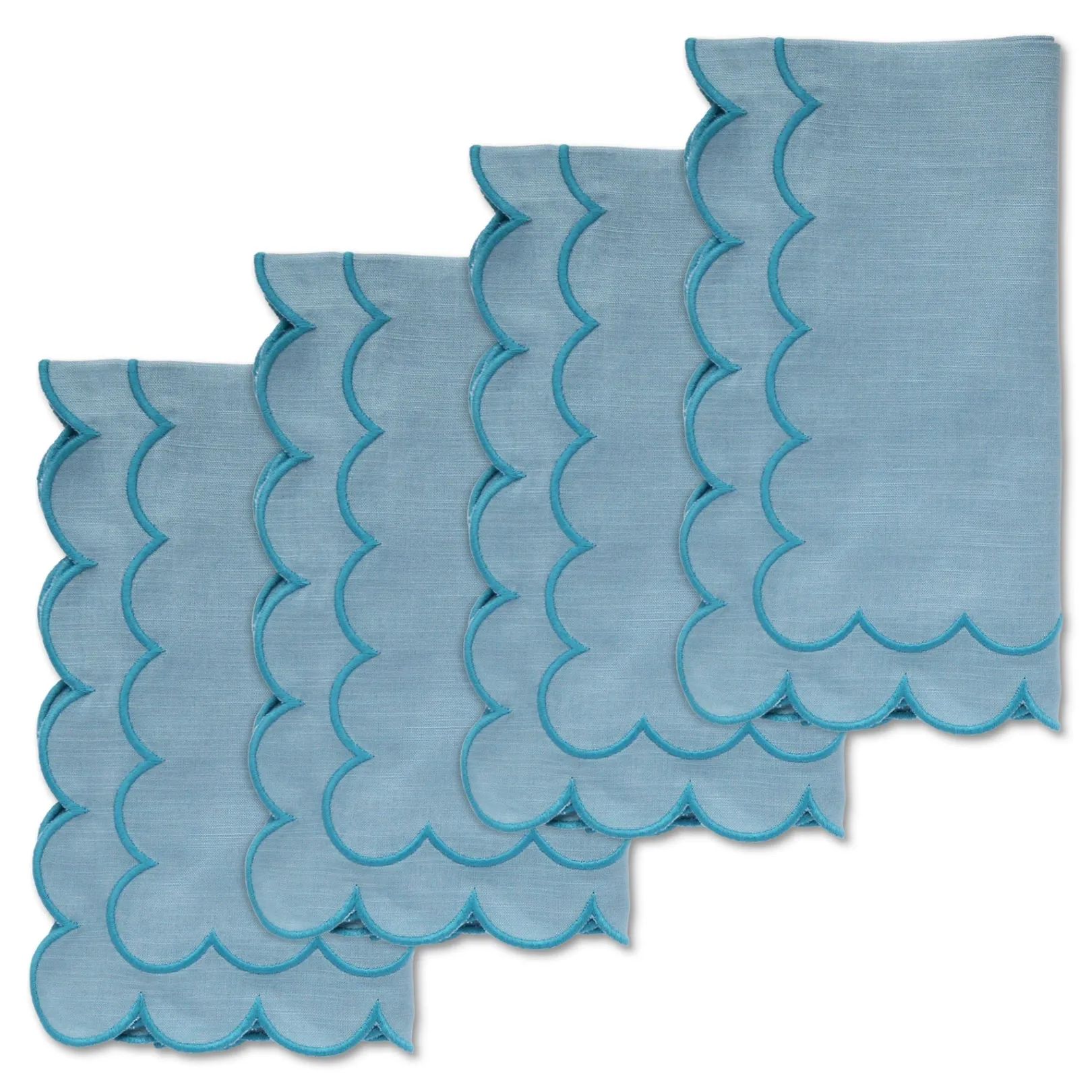 A set of dinner napkins featuring a timeless round scalloped edge