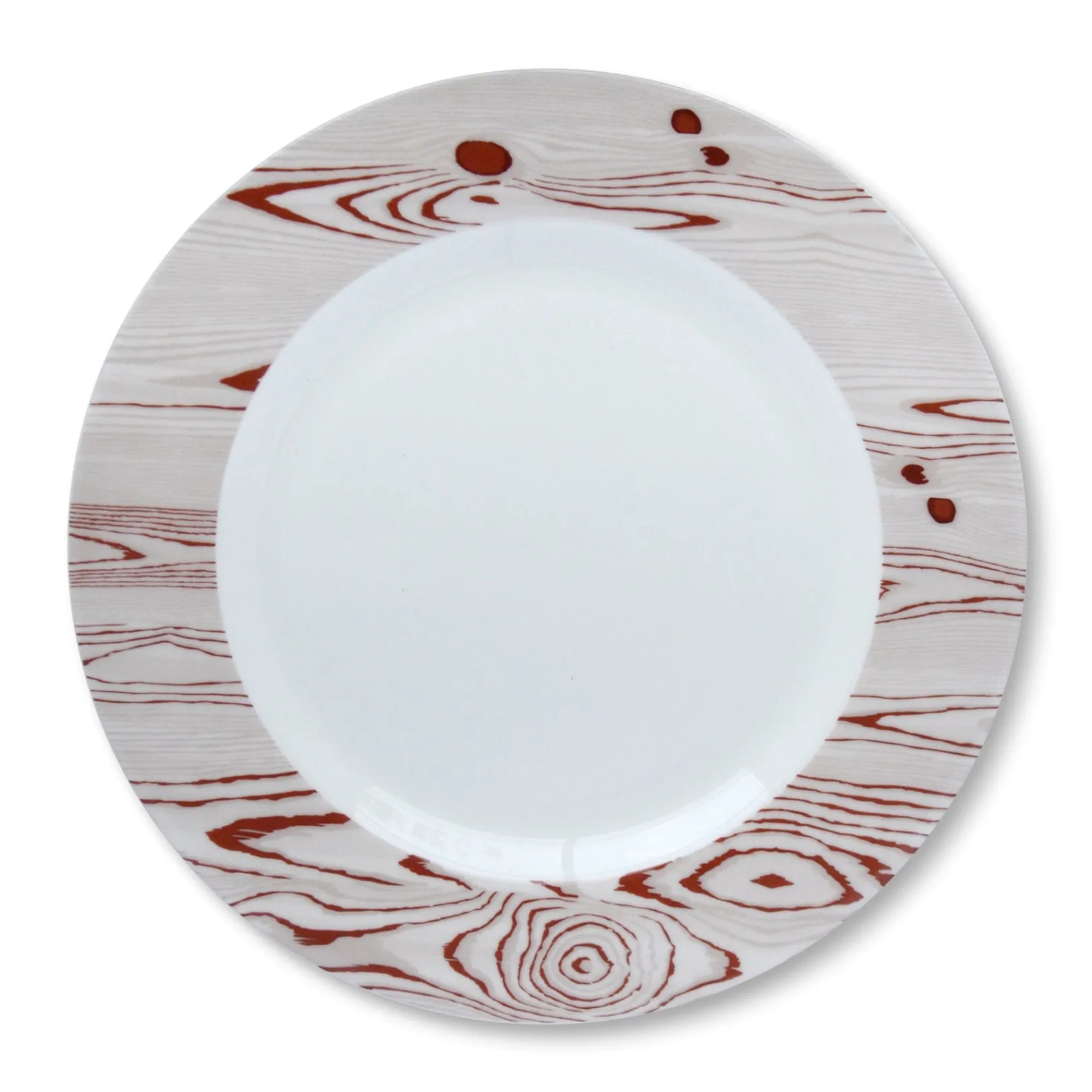 Trompe l’oeil plate to resemble white birch wood. Lovely for Thanksgiving, dinner in the mountains, and everyday common use. Please note there is a hint of pink in the coloration.