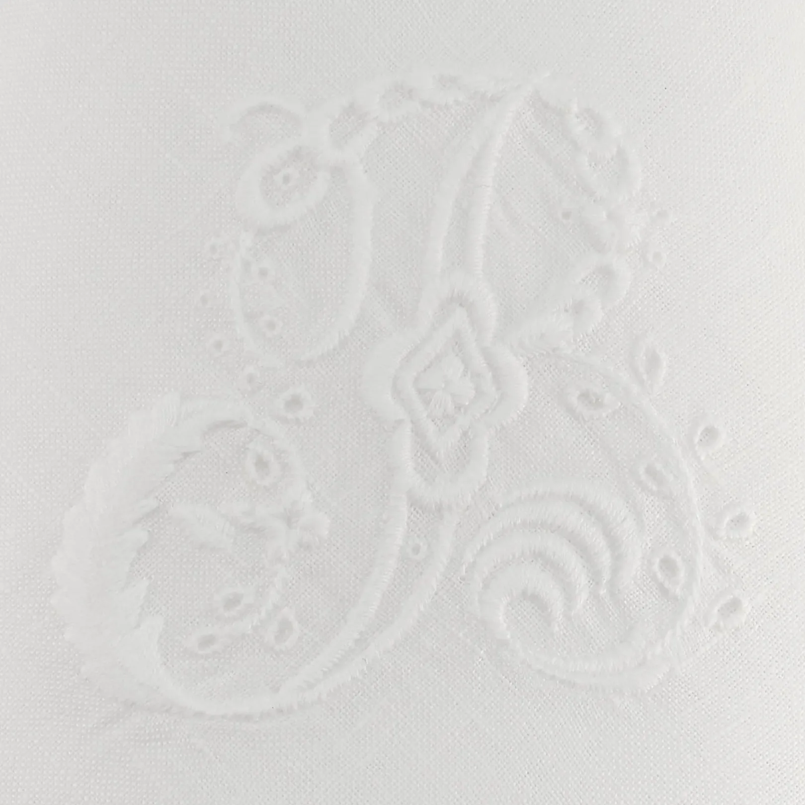 These white monogram initial dinner napkins bring the perfect personal touch to your dinner table. The letter ‘B’ is ornately embroidered with a cutwork technique and white thread. Beautiful for everyday use & birthday celebrations!