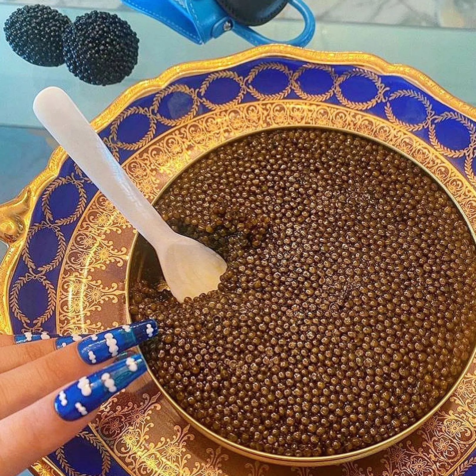Matches with Caviar Cocktail Napkin Set and an actual caviar blini.