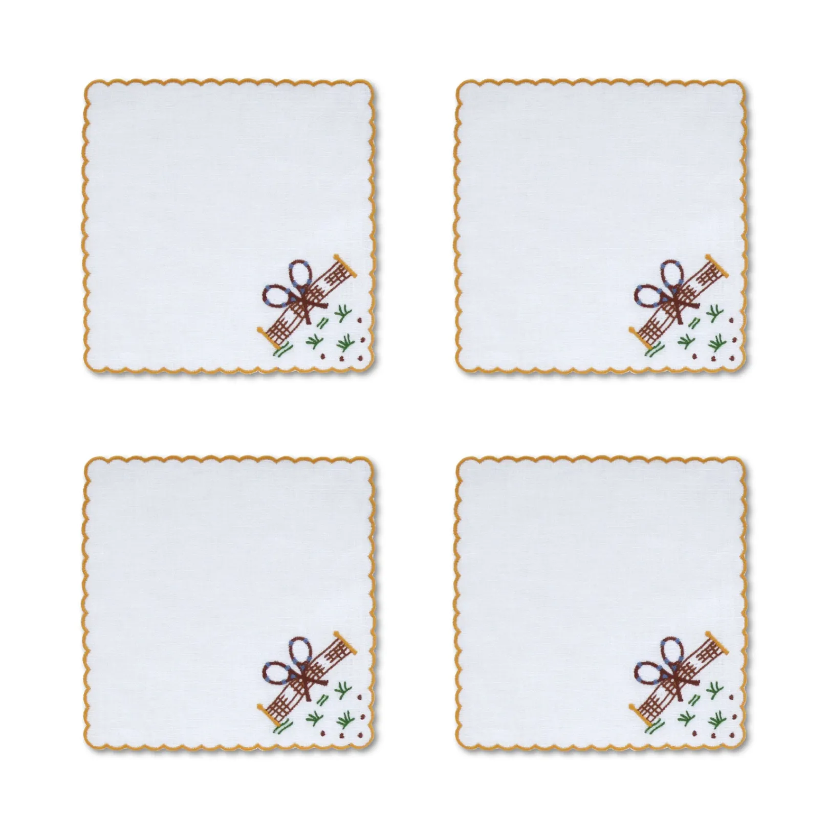 Inspired by vintage linens from Madeira depicting tennis, this cocktail napkin is perfect for tennis parties and fans.
