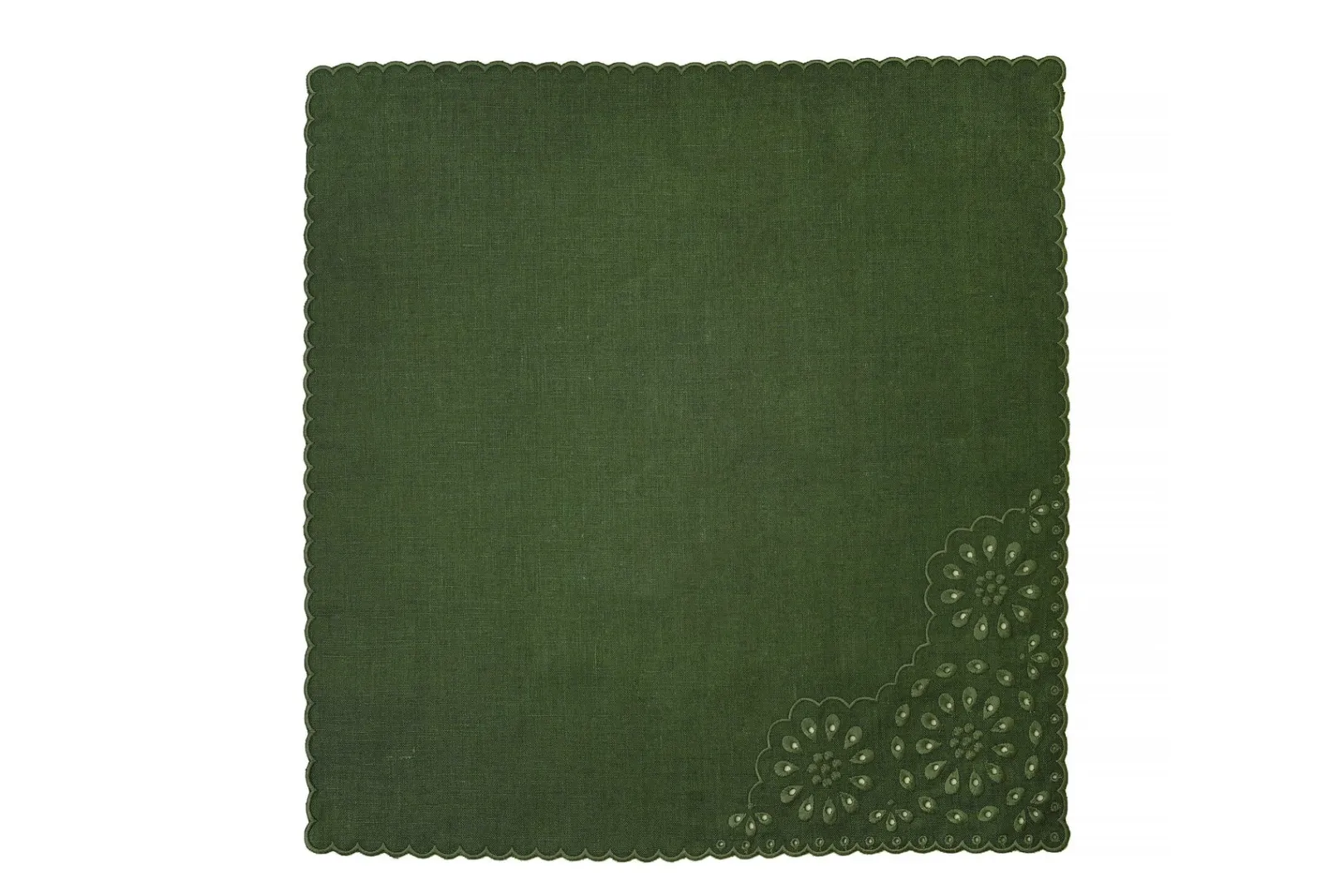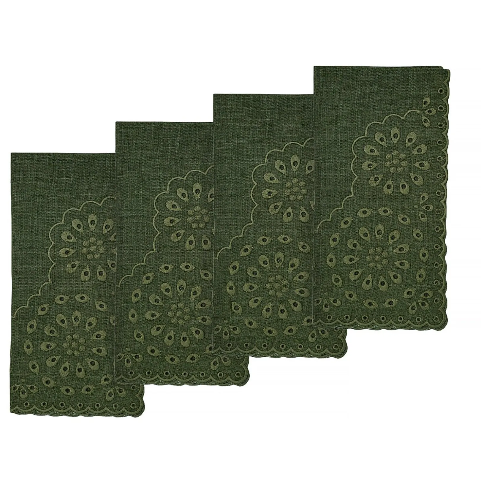 A set of dinner napkins featuring a timeless elegant eyelet pattern
