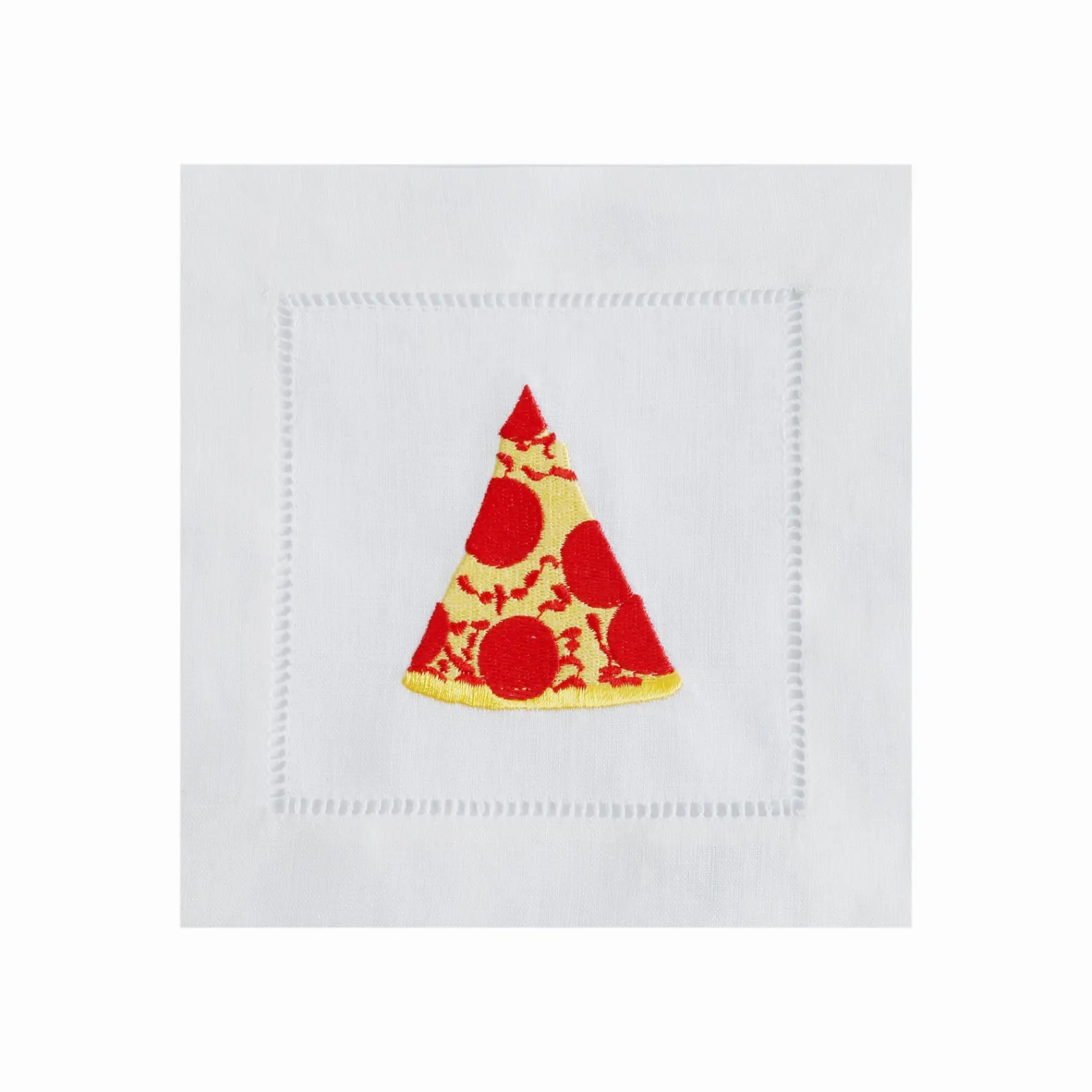 A perfect napkin set for a New Yorker or wannabe! There’s a napkin embroidered for the iconic slice of pizza, filthy pigeon, yellow cab, and Lady Liberty.