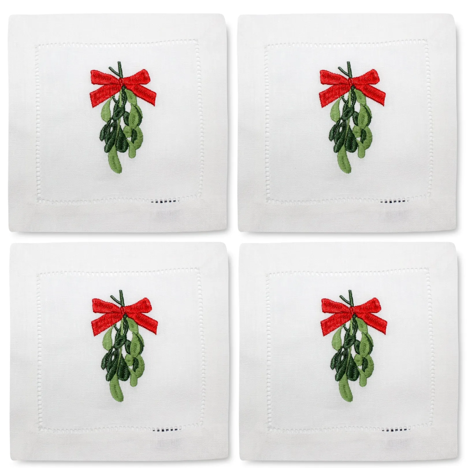 ‘Tis the season to have a cocktail in hand — and a corresponding cocktail napkin! By hand, we’ve embroidered mistletoe on linen cocktail napkins. It’s the ultimate cocktail napkin to dangle over your crush’s head.