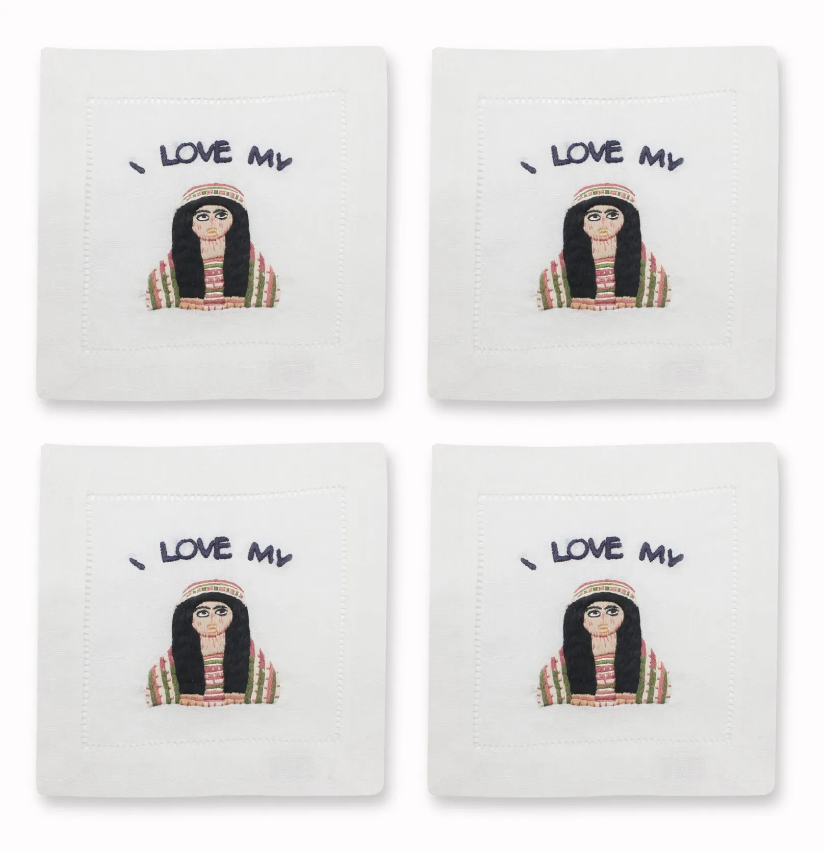 Embroidered on hemstitch linen napkin.