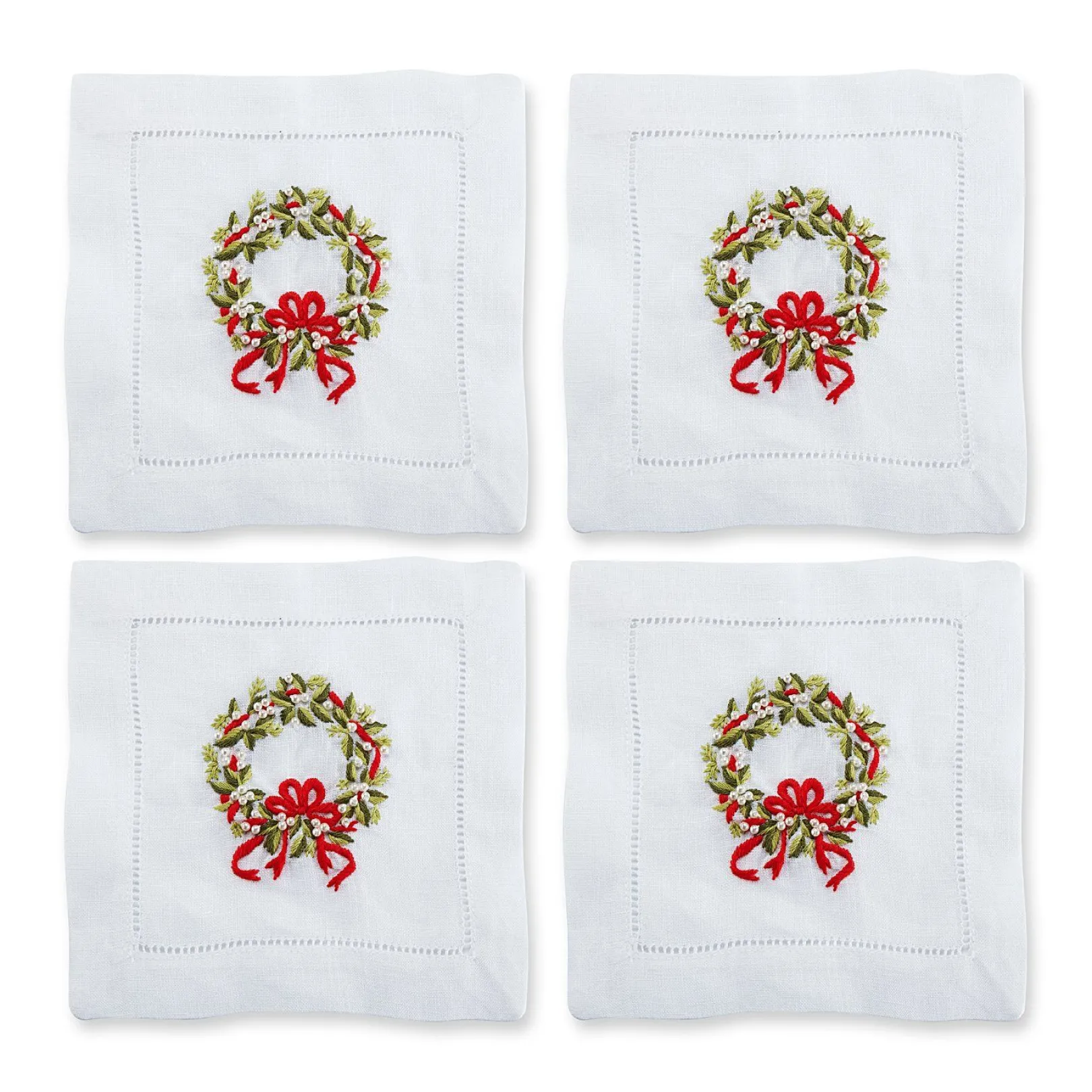 ‘Tis the season for decadence and cocktails! By hand, we’ve embroidered natural pearls into a festive wreath on linen cocktail napkins. It’s the ultimate gift for the host who has everything.
