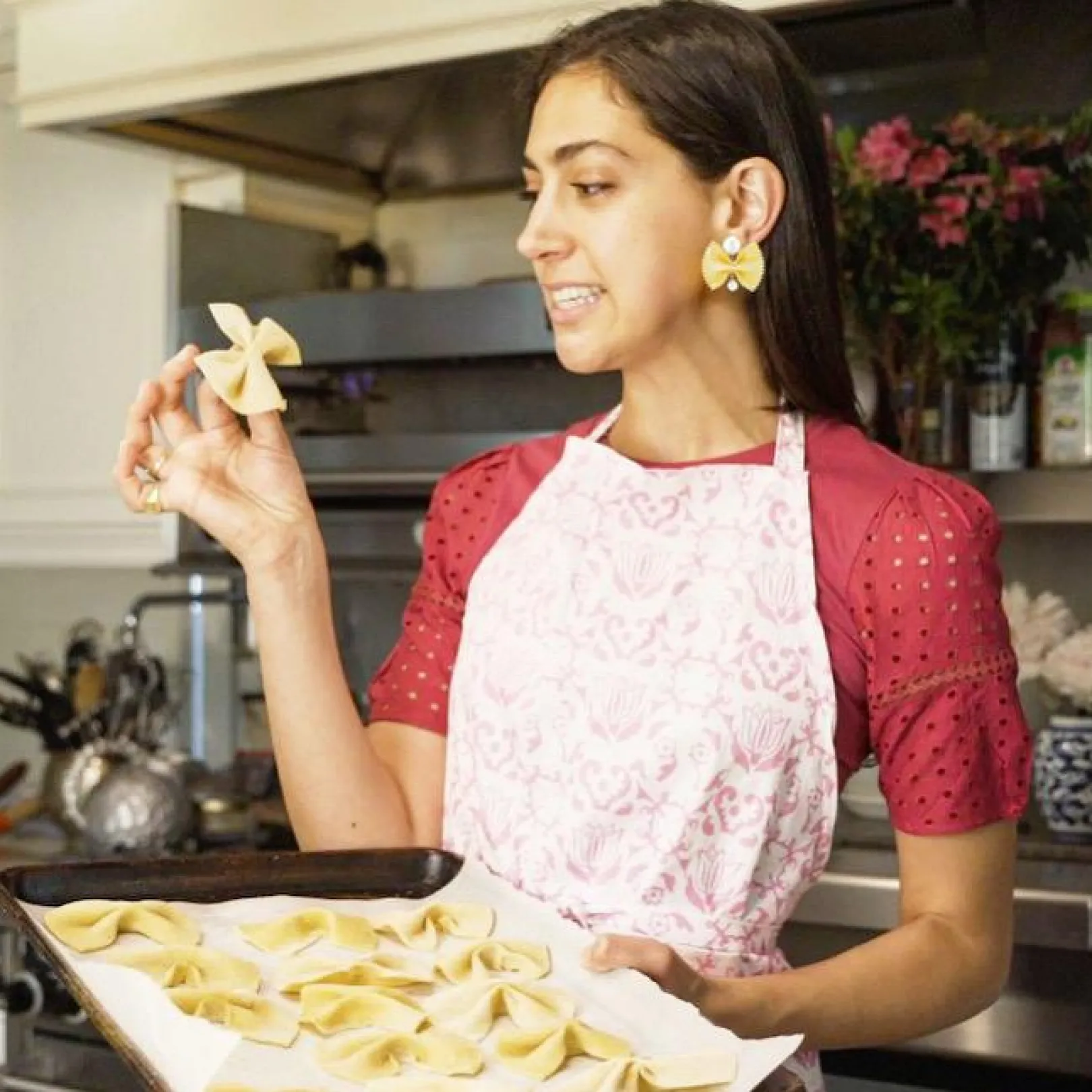 A patterned apron for a passionate cook! The bib is 30.5 inches tall and 24.5 inches wide. This pink and white apron would be great for a flower arranging class or girly bridal shower.