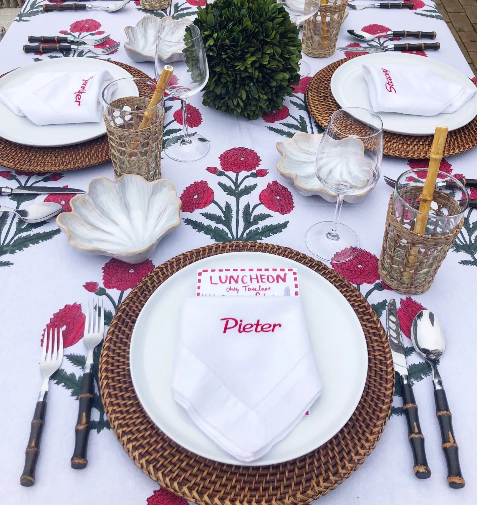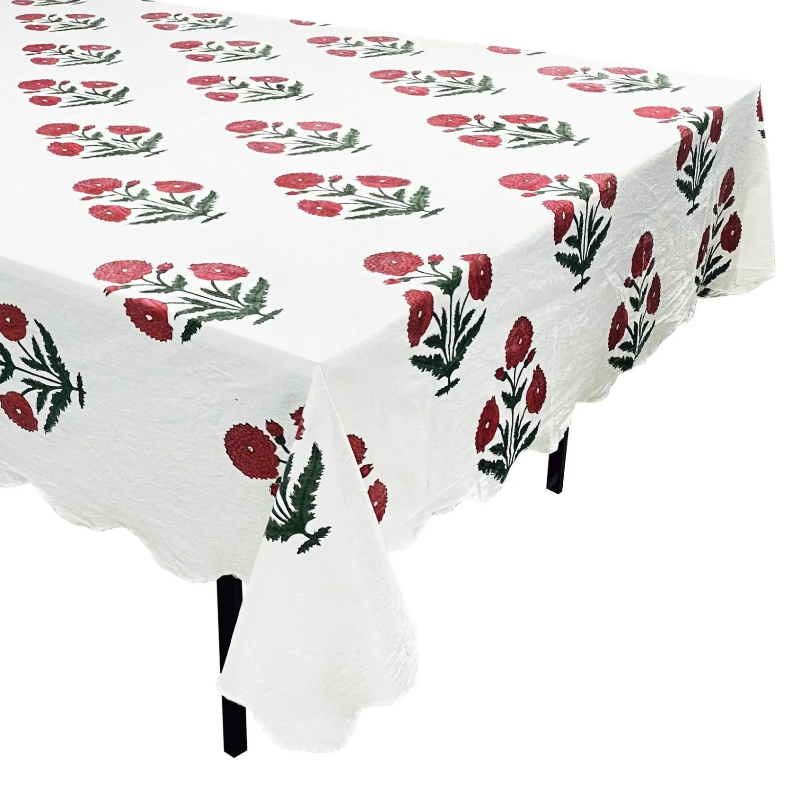 This red poppy block-printed, rectangular tablecloth is available in 2 sizes.