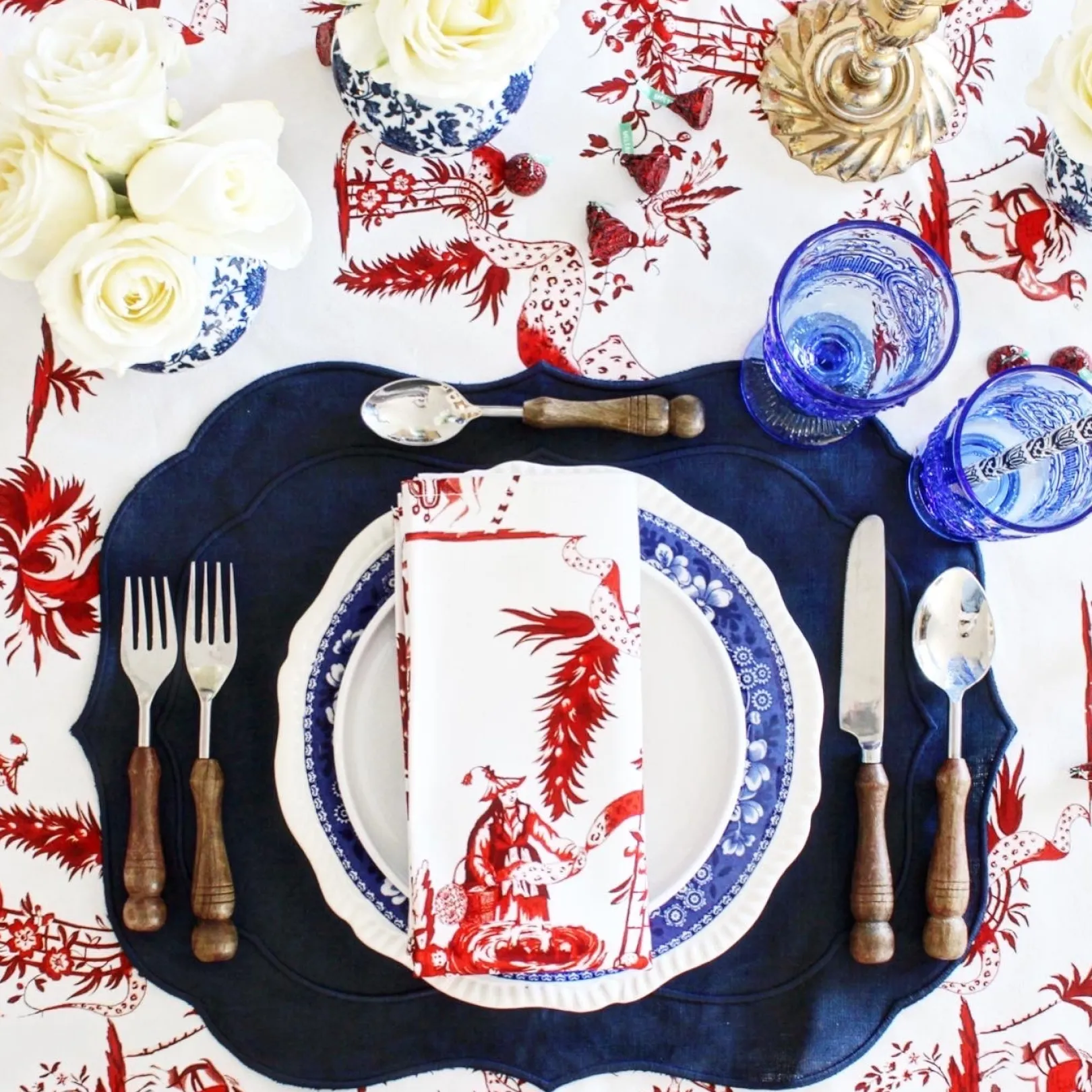 These red toile napkins are a beautiful table addition