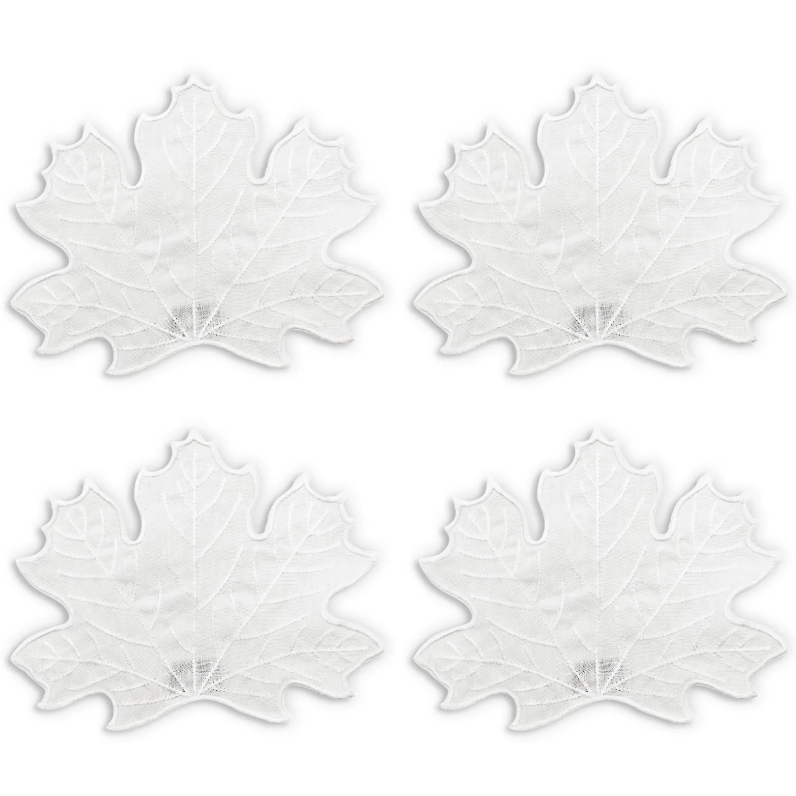 Cocktail napkins for all seasons — and the white embroidery on white linen means they can be bleached. These maple leaf-shaped napkins are perfect with all leaf tableware, including iconic lettuceware.