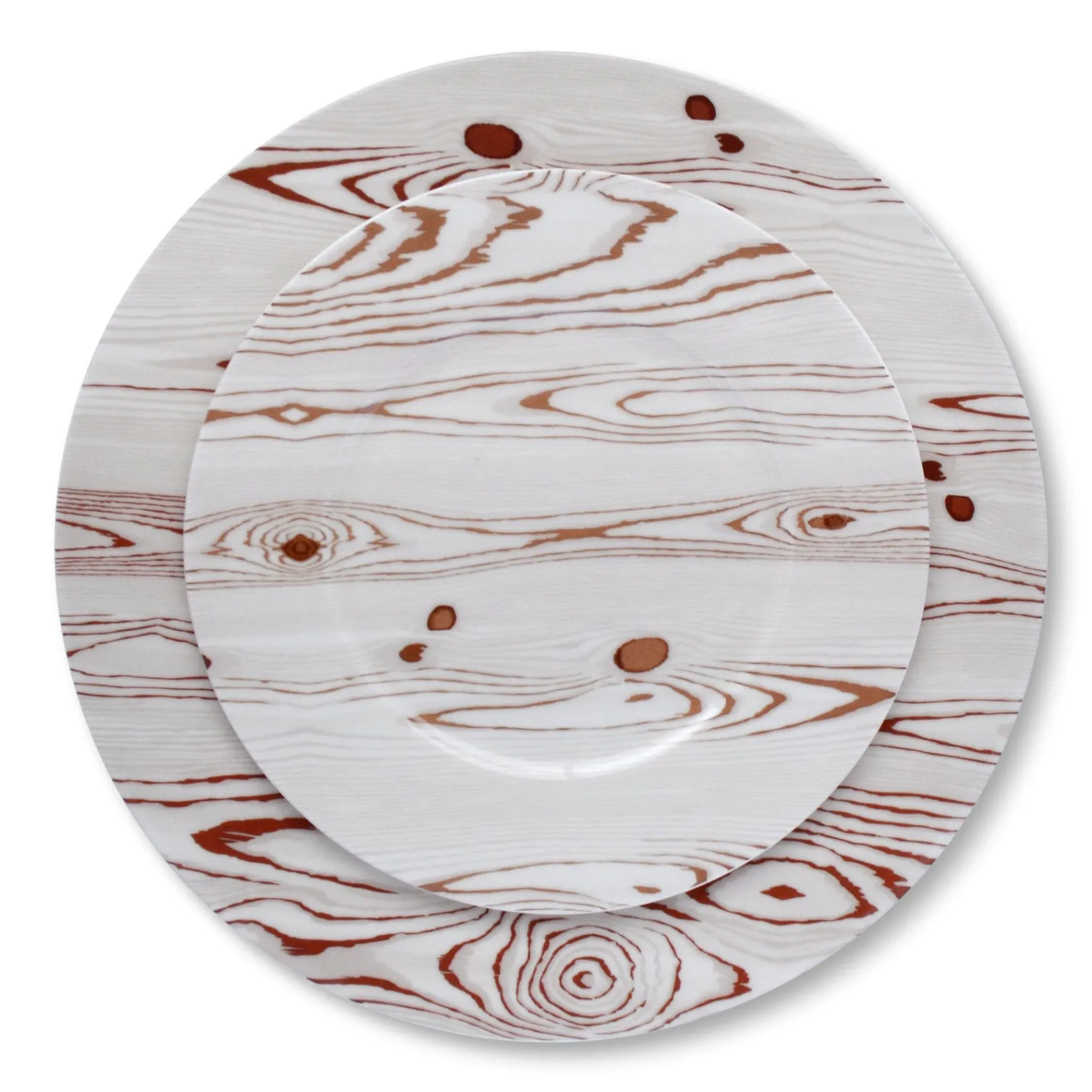 Trompe l’oeil plate to resemble white birch wood. Lovely for Thanksgiving, dinner in the mountains, and everyday common use. Please note there is a hint of pink in the coloration.