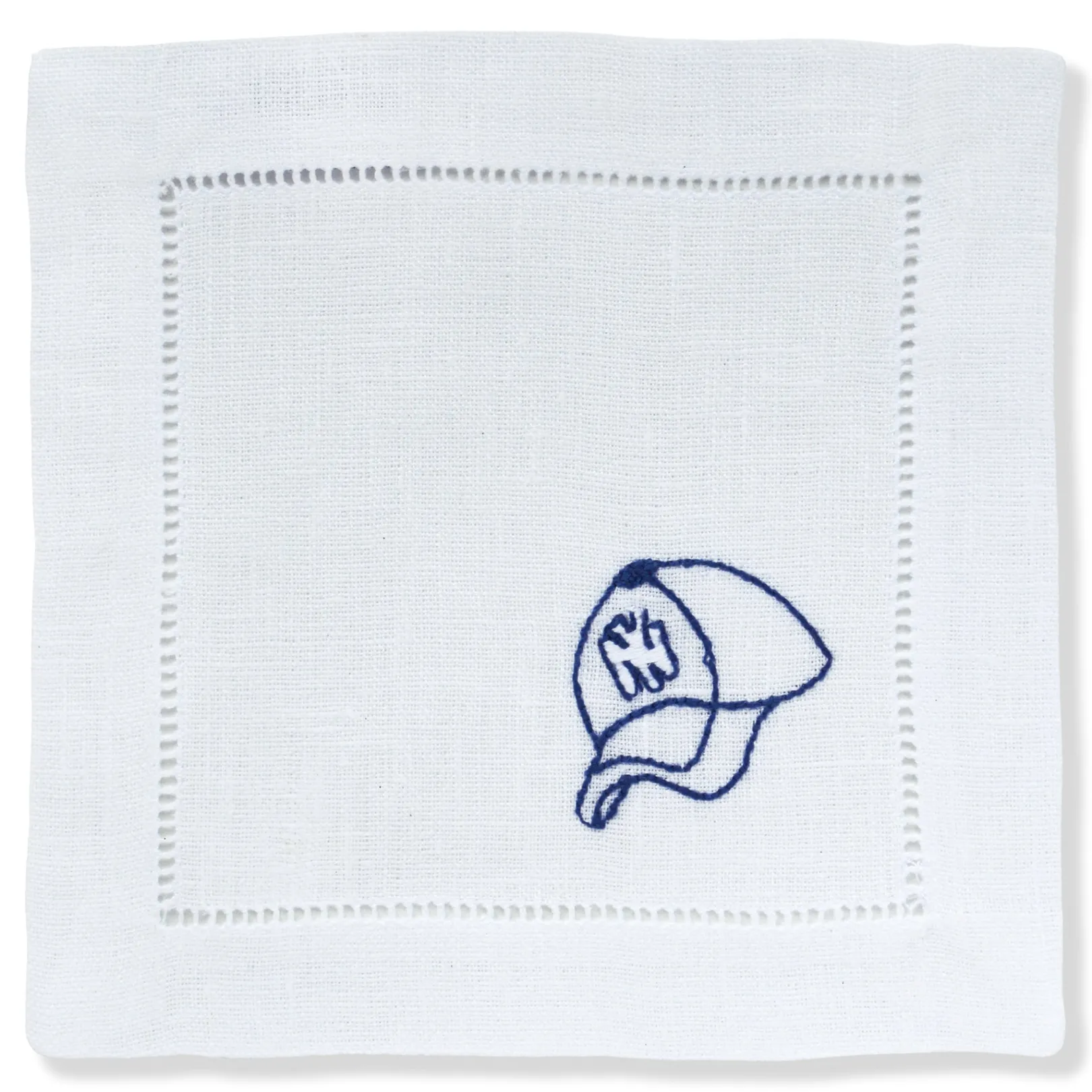 Cocktail napkins for New York Yankees fans. The corner embroidery depicts a Yankees hat with signature NY logo.